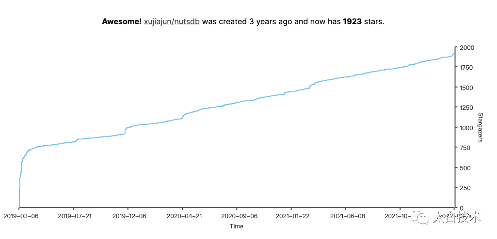 目前 NutsDB 已经接近 2k 的 star