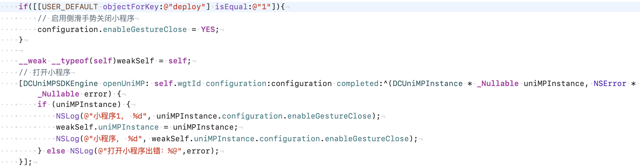 ios oc语言集成uniapp的sdk 使用DCUniMPConfiguration配置信息,设置启动侧滑关闭小程序configuration.enableGestureClose = YES,通过DCUniMPSDKEngine openUniMP方法可以正常打开小程序,但侧滑无法关闭小程序,ios原生有抽屉功能注册手势,以为是抽屉功能与侧滑关闭小程序有冲突,将抽屉功能注释测试也无法侧滑关闭小程序,请大神指点