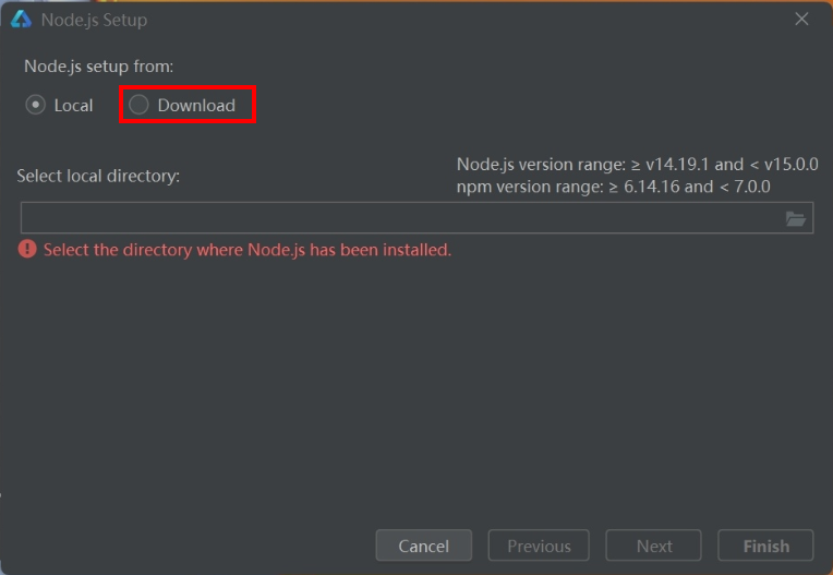 这是问你Node.js从哪里安装,如果你本地没有的话就选择download,从网上安装