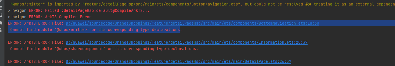 HarmonyOS 鸿蒙Next openHarmony的 applications_app_samples示例里面 OrangeShopping 编译报错怎么解决呢 是hsp 配置都配置还是报错 哪里的问题呢