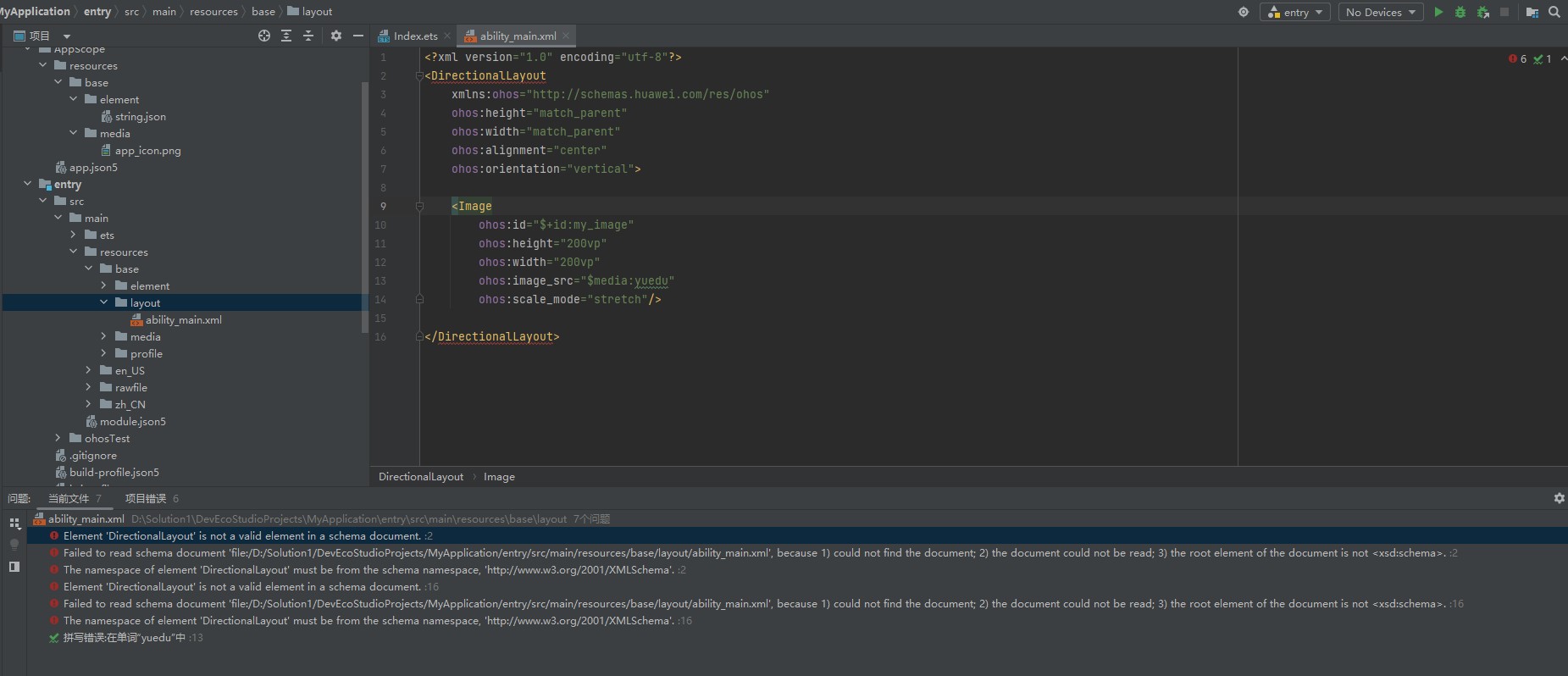 HarmonyOS 鸿蒙Next XML创建image出现错误 大佬们,帮我看看这个报错是为什么吗,我看教程想实现使用Image组件显示本地图片的,但是报错了,我用的版本是3.1,然后教程里是有layout文件的,但是我这个没有,所以我新建了layout文件,然后建立了这个xml文件(拼写那个是没有错的,我想要打开的那个图片的名字就是yuedu)