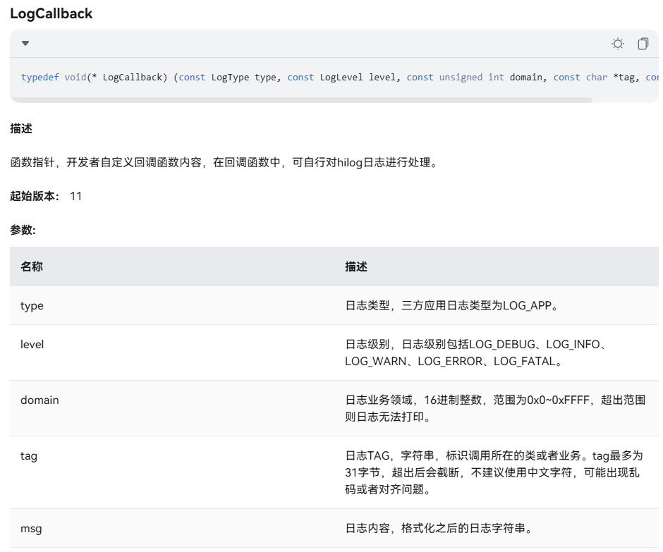 void LogCallback(OH_LogLevel level, const char* tag, const char* fmt, ...) {