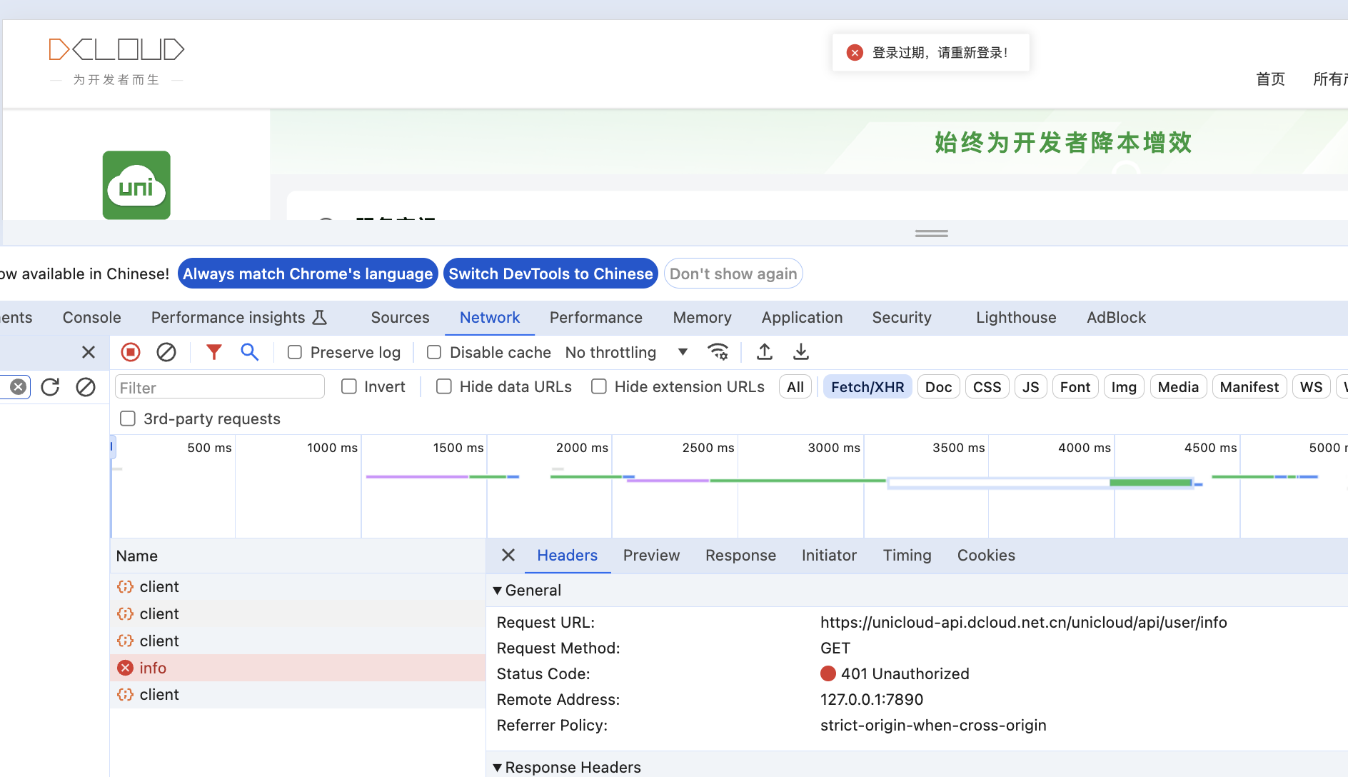 Mac Chrome浏览器,无法登录 https://unicloud.dcloud.net.cn/ 后台,报401错误。