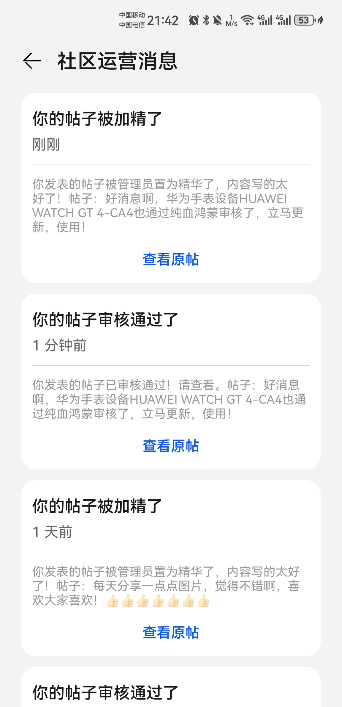 刚才分享了一条华为手表升级纯血HarmonyOS鸿蒙Next系统的帖子,居然显示加精了,把我看啥了啊,这是怎么回事啊!