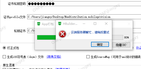 - app云打包-ios-正常打包提示云端服务器繁忙