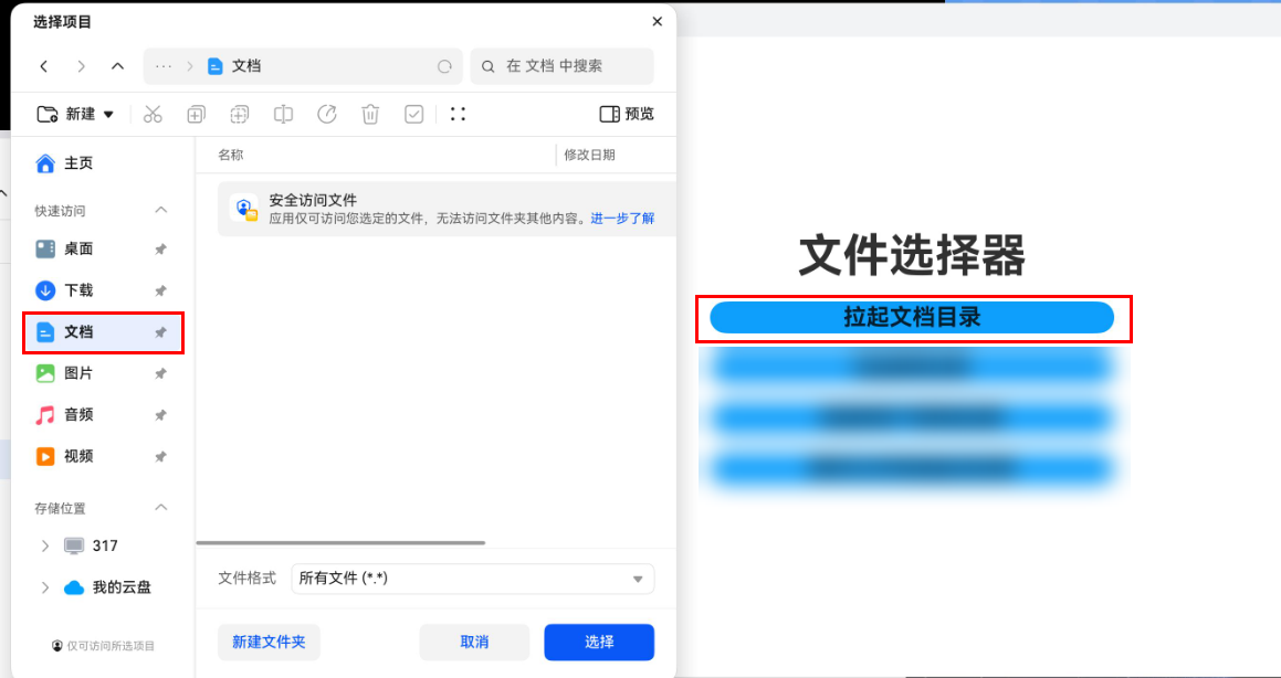 通过select函数拉起文件管理提供的filepicker。通过filepicker中的DocumentSelectOptions参数,可以指定以下内容: