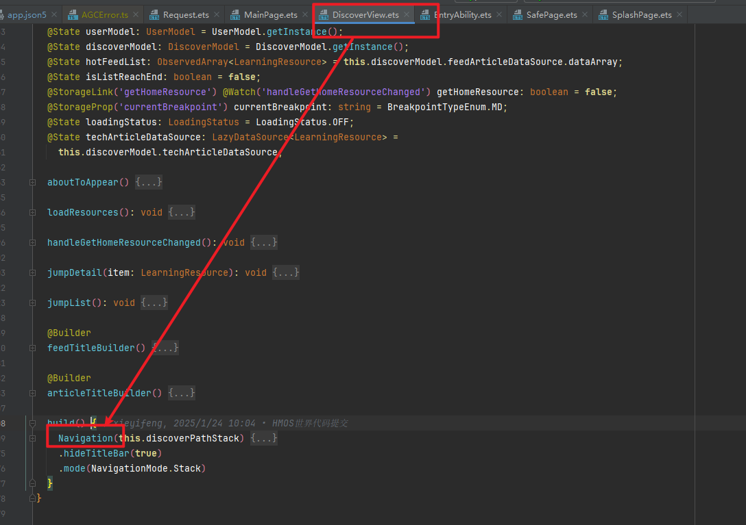 作者可以理解为几个不同组件之间的内部跳转,楼主可以参考一下这个文档:Navigation-导航与切换-ArkTS组件-ArkUI(方舟UI框架)-应用框架 - 华为HarmonyOS开发者