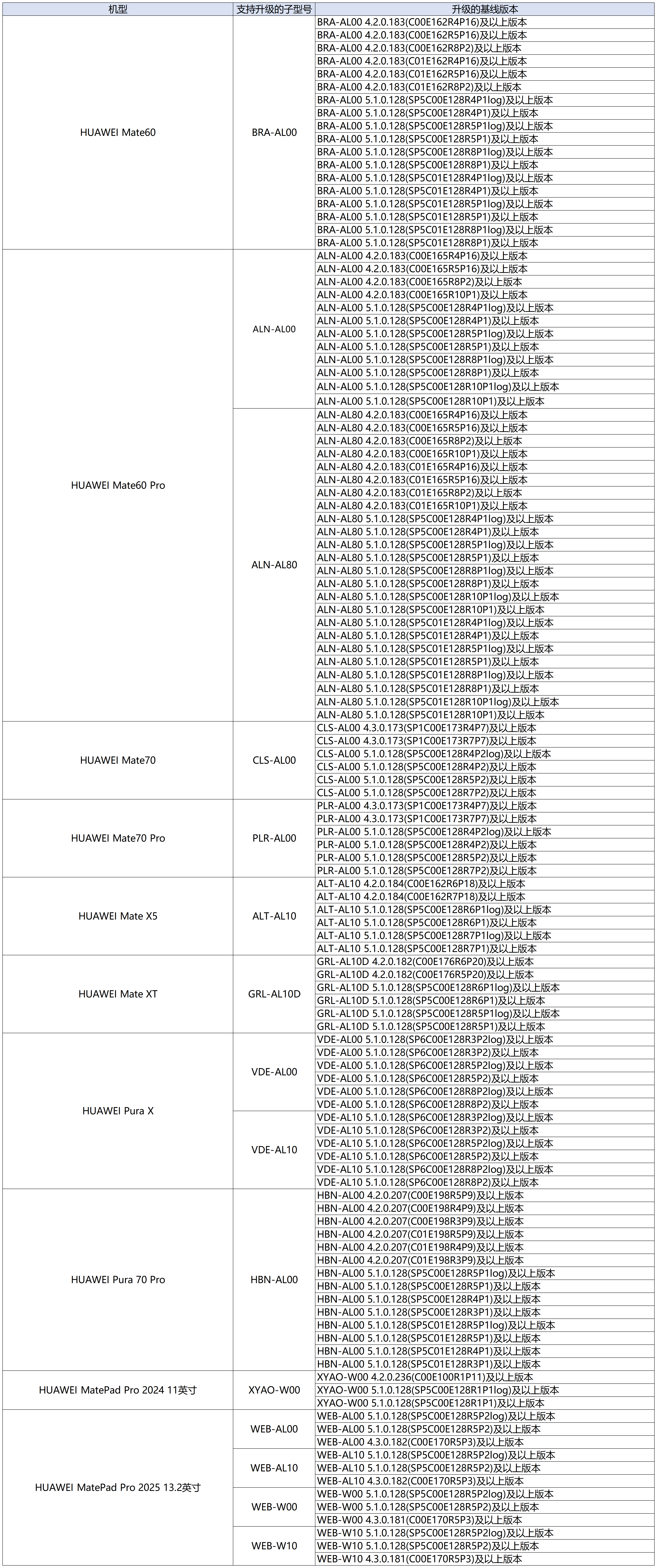 - HUAWEI Pura 70 (HBN-AL80) | 基线版本:6.0.0.112 (SP2C00E112R4P2)