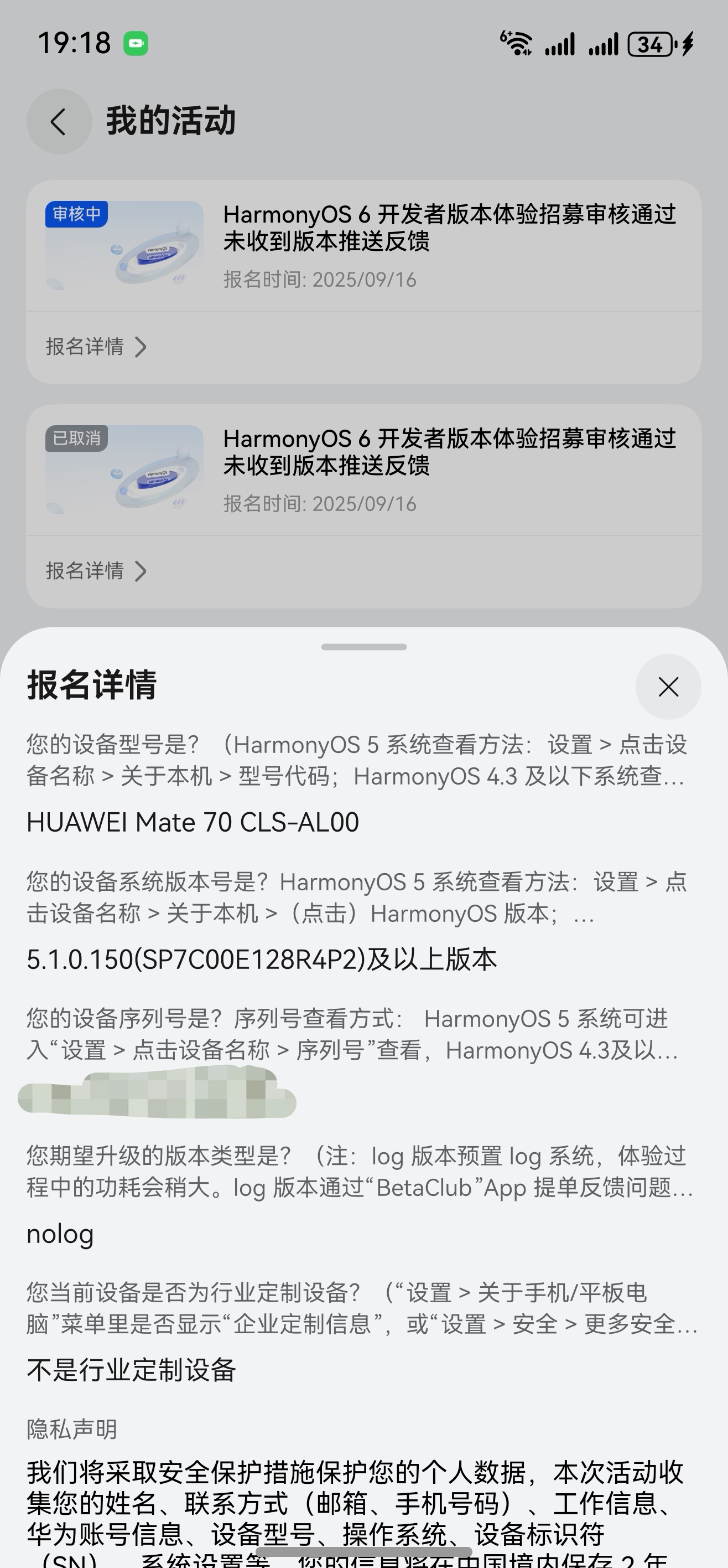 HarmonyOS 鸿蒙Next 6.0尝鲜 审核通过了但是一直没推送是不是因为mate70Pro错填成70啊 求告知