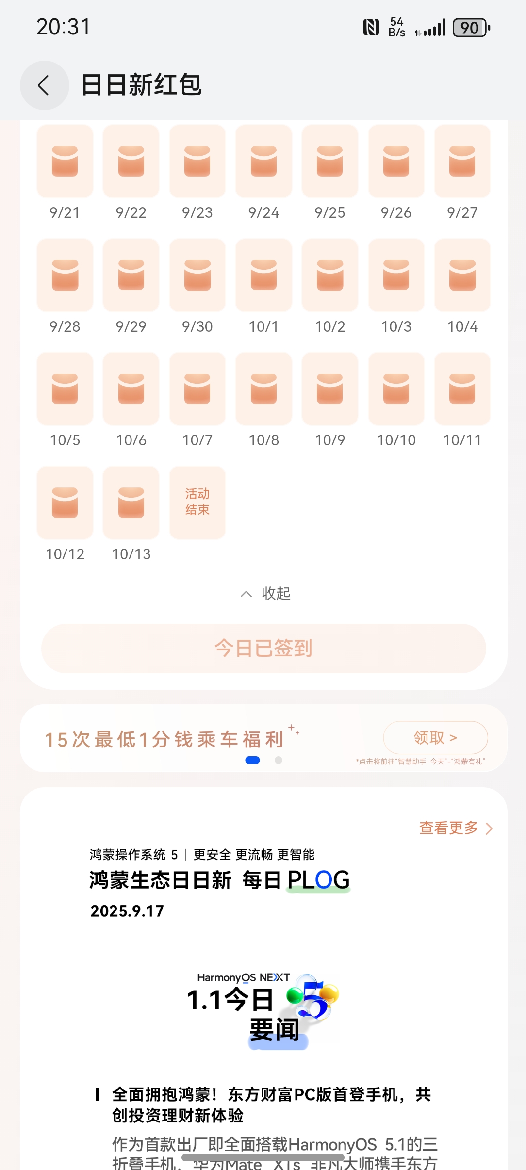 nova14升级HarmonyOS 鸿蒙Next 6.0日日新红包还没有领完,还能继续领取吗?