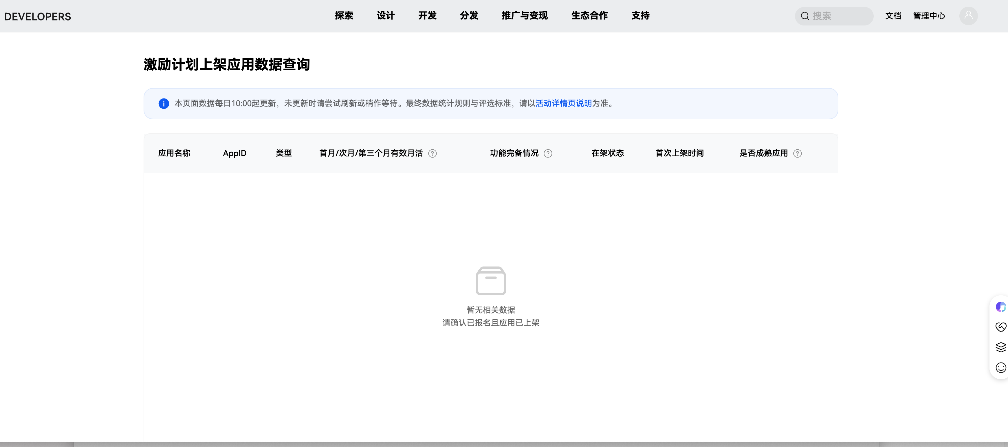 账户状态异常:请确认您的开发者账户已完成实名认证且处于正常状态,未通过审核的账户可能无法显示数据。