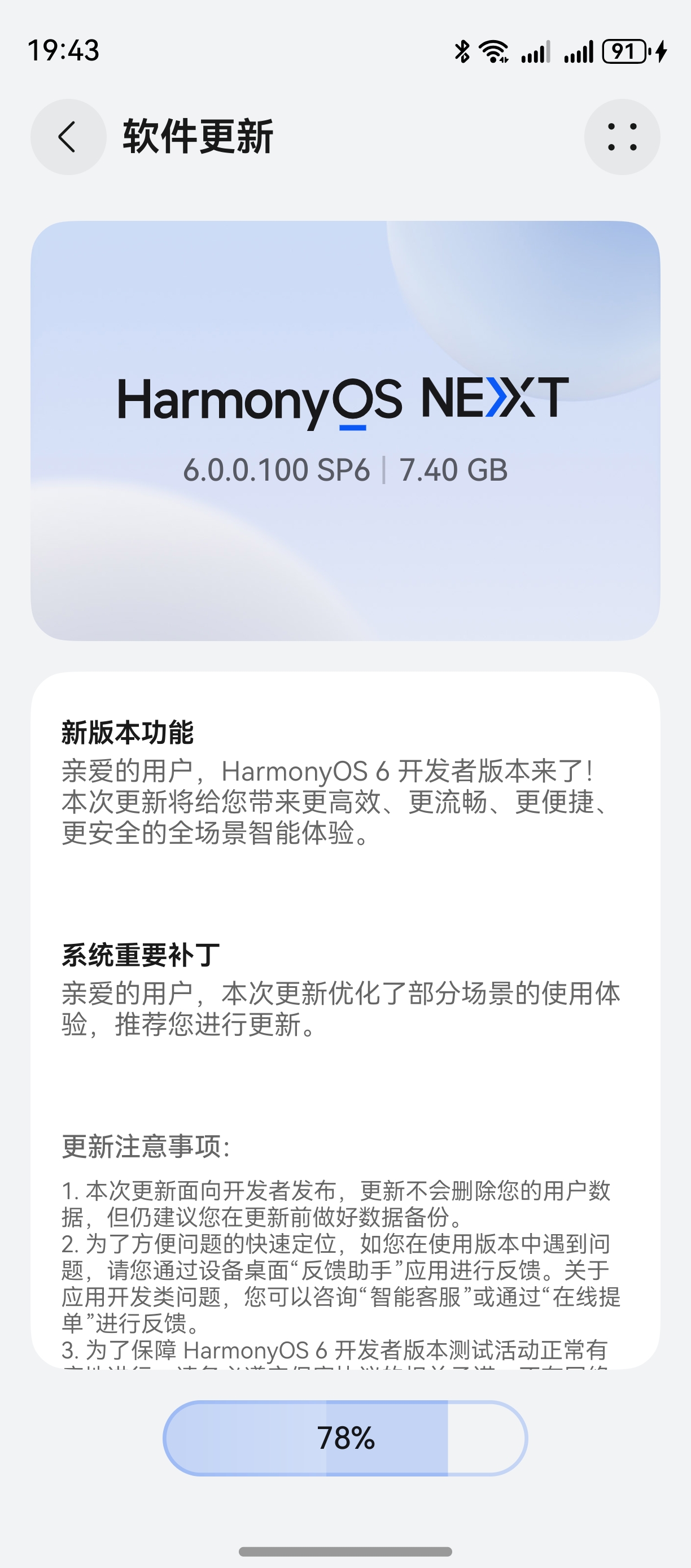 HarmonyOS 鸿蒙Next收到6.0,正在下载更新!