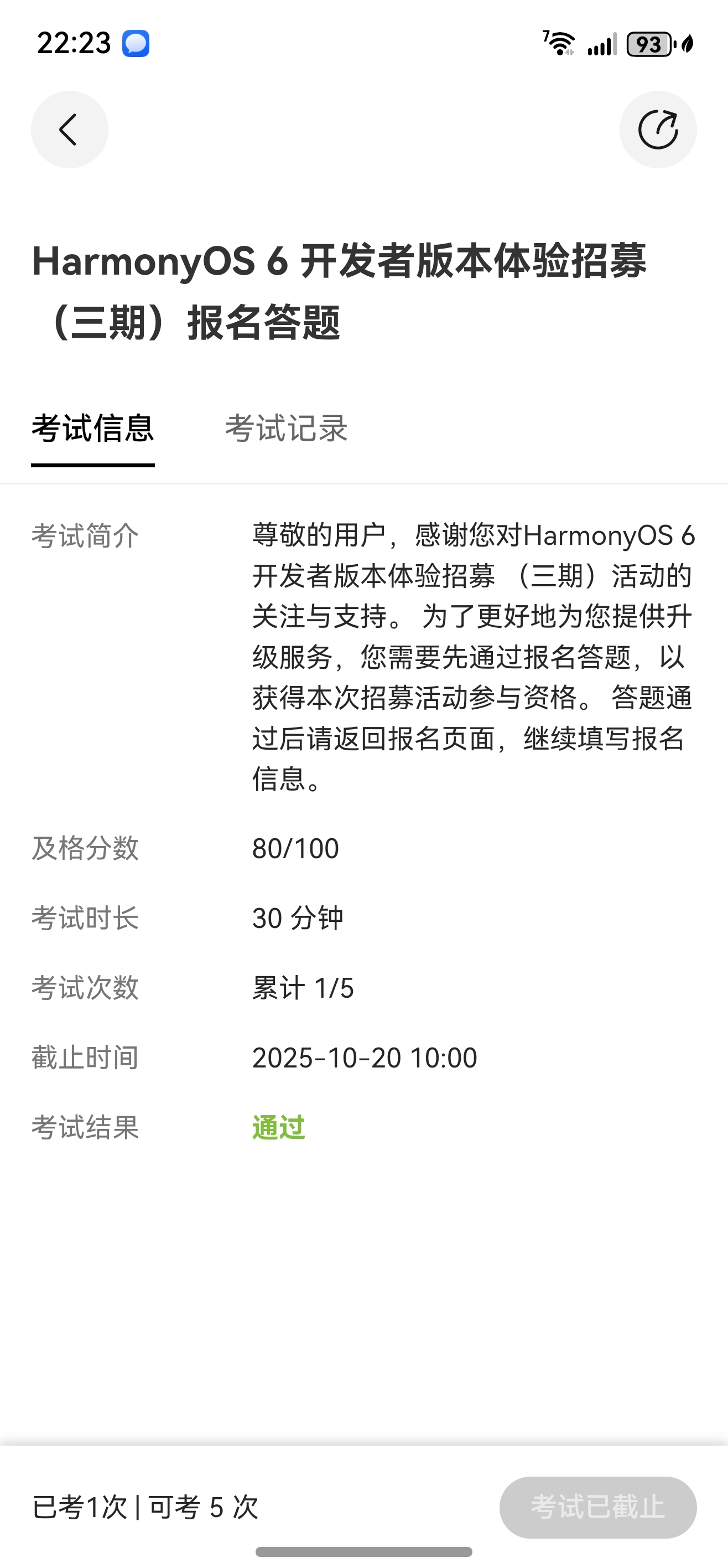 HarmonyOS鸿蒙Next考试通过是否推送?6.0