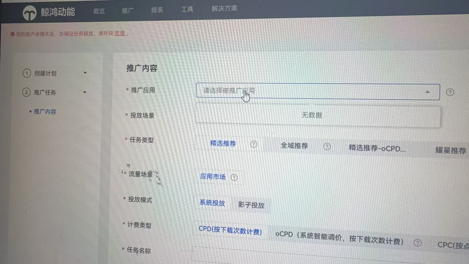 HarmonyOS鸿蒙Next中使用鲸鸿动能后台时找不到自己的应用,寻求帮助。 【问题描述】:使用鲸鸿动能后台时在推广内容中选择应用时发现显示无数据,选择不了应用是怎么回事?