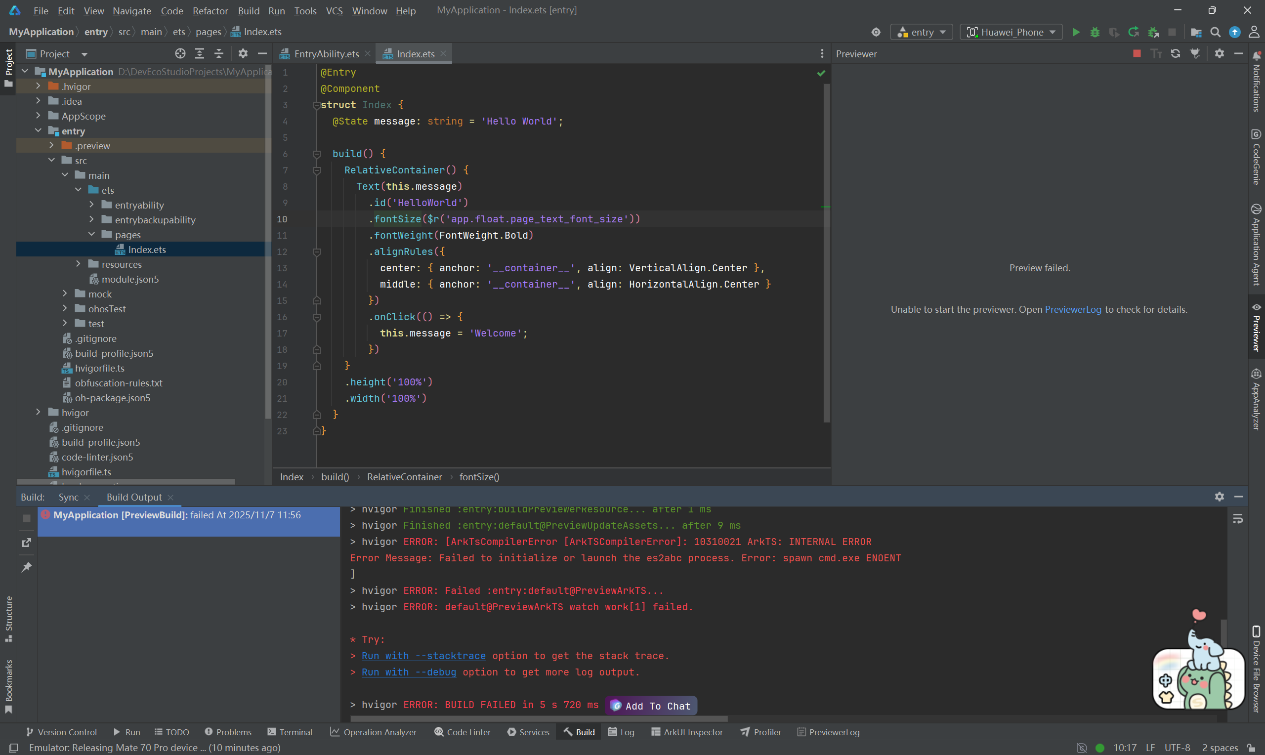 DevEcoStudio无法预览 win11,之前是模拟机无法打开,然后我尝试了下图的解决方案可以打开了,但是现在跑不通代码,就是无法预览怎么办