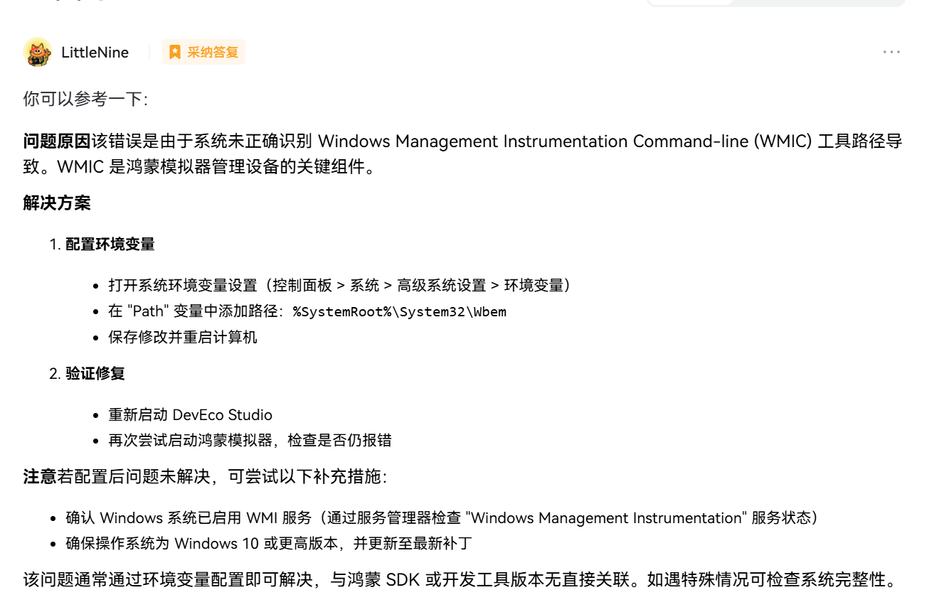 确认本地模拟器已正常启动(任务栏显示“HarmonyOS Emulator”图标)。若未运行,请在Device Manager中重启模拟器。 -