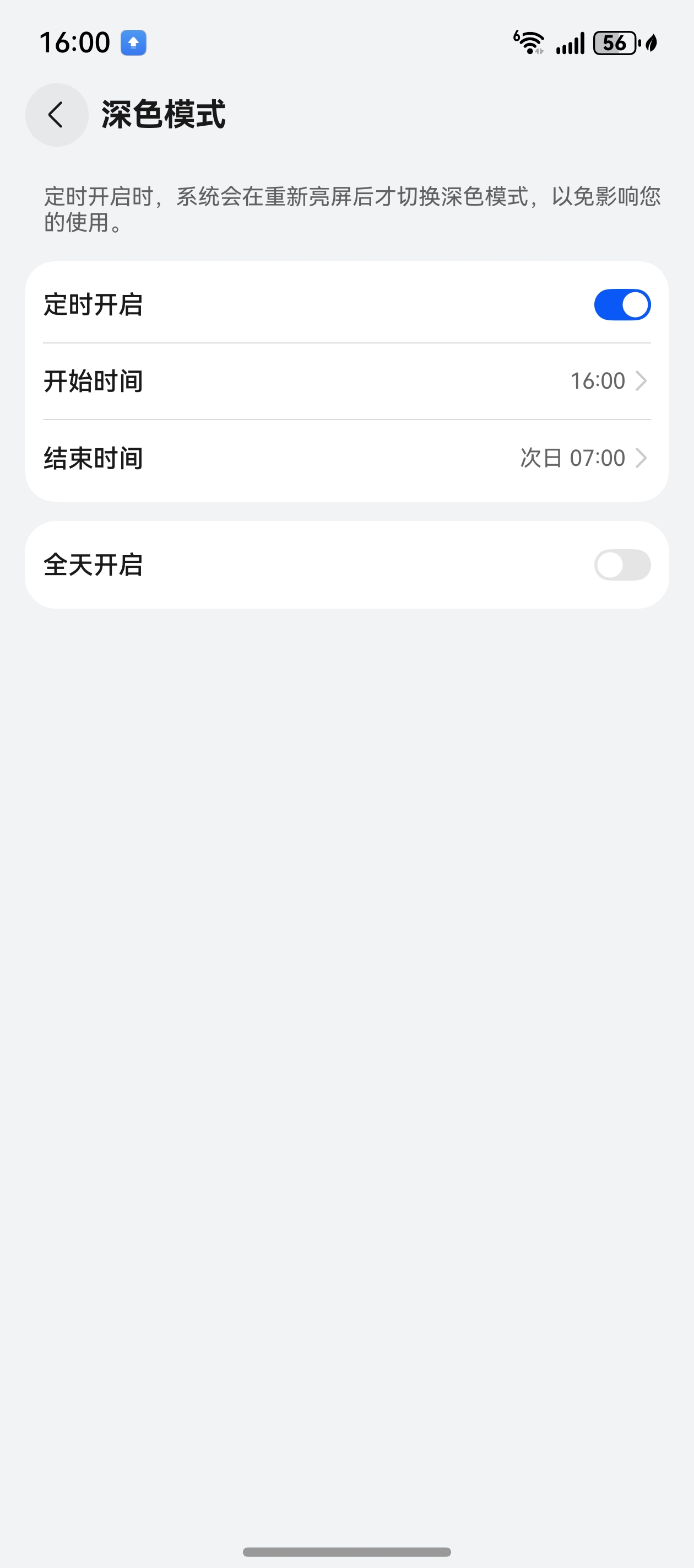 在HarmonyOS Next中,自动切换深色模式依赖于系统主题服务。如果无法自动切换,请检查以下设置: