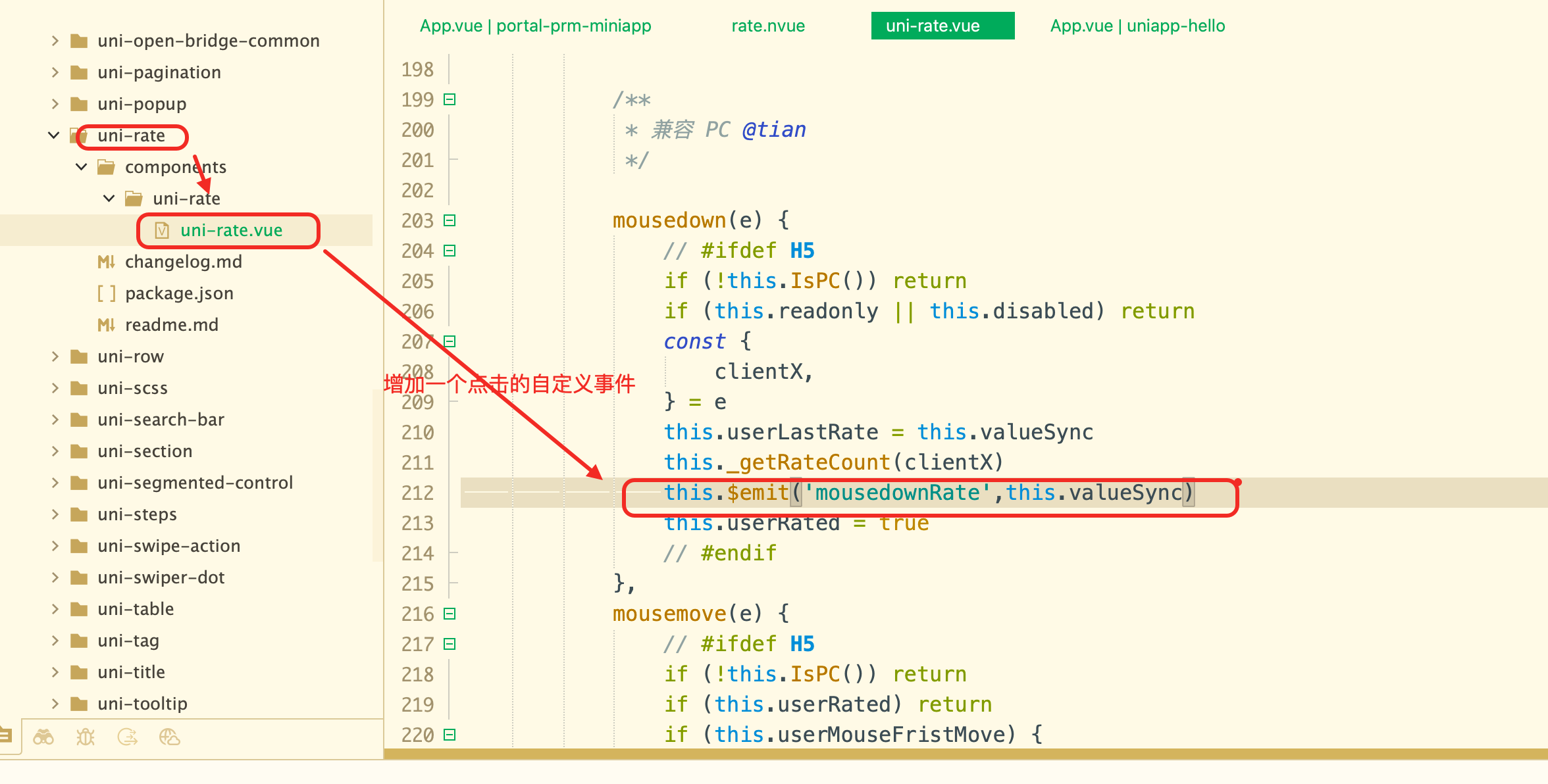 可以给uni-rate组件中的mousedown增加一个自定义事件
