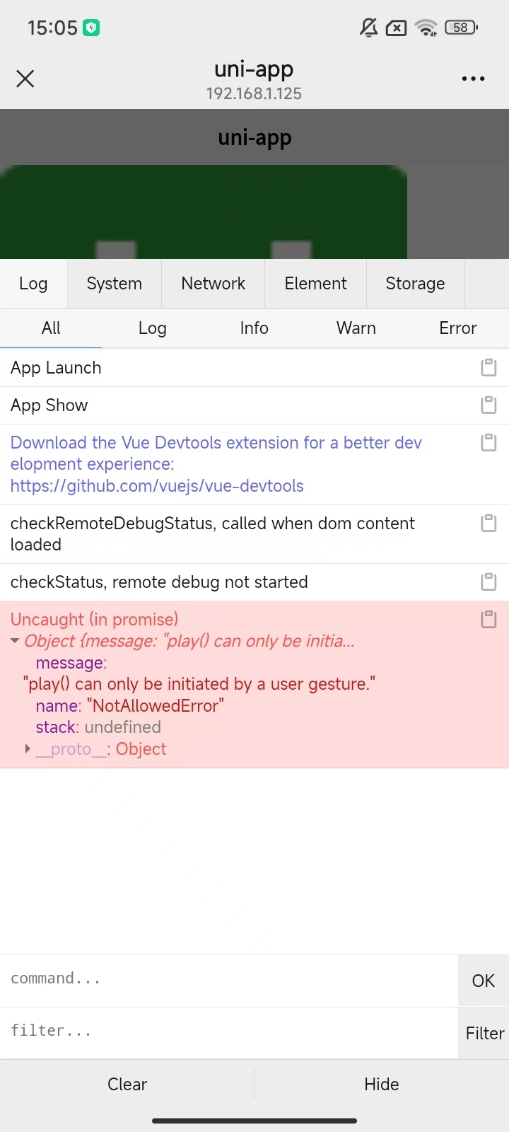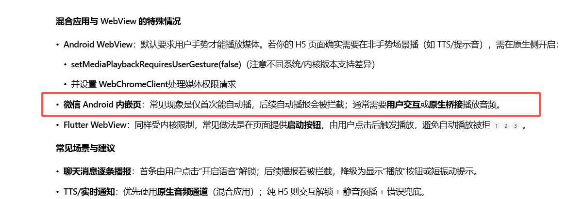 这个是微信内置浏览器的限制吧?我看报错提示是要求需要用户手势触发,搜索也说是微信浏览器的限制
