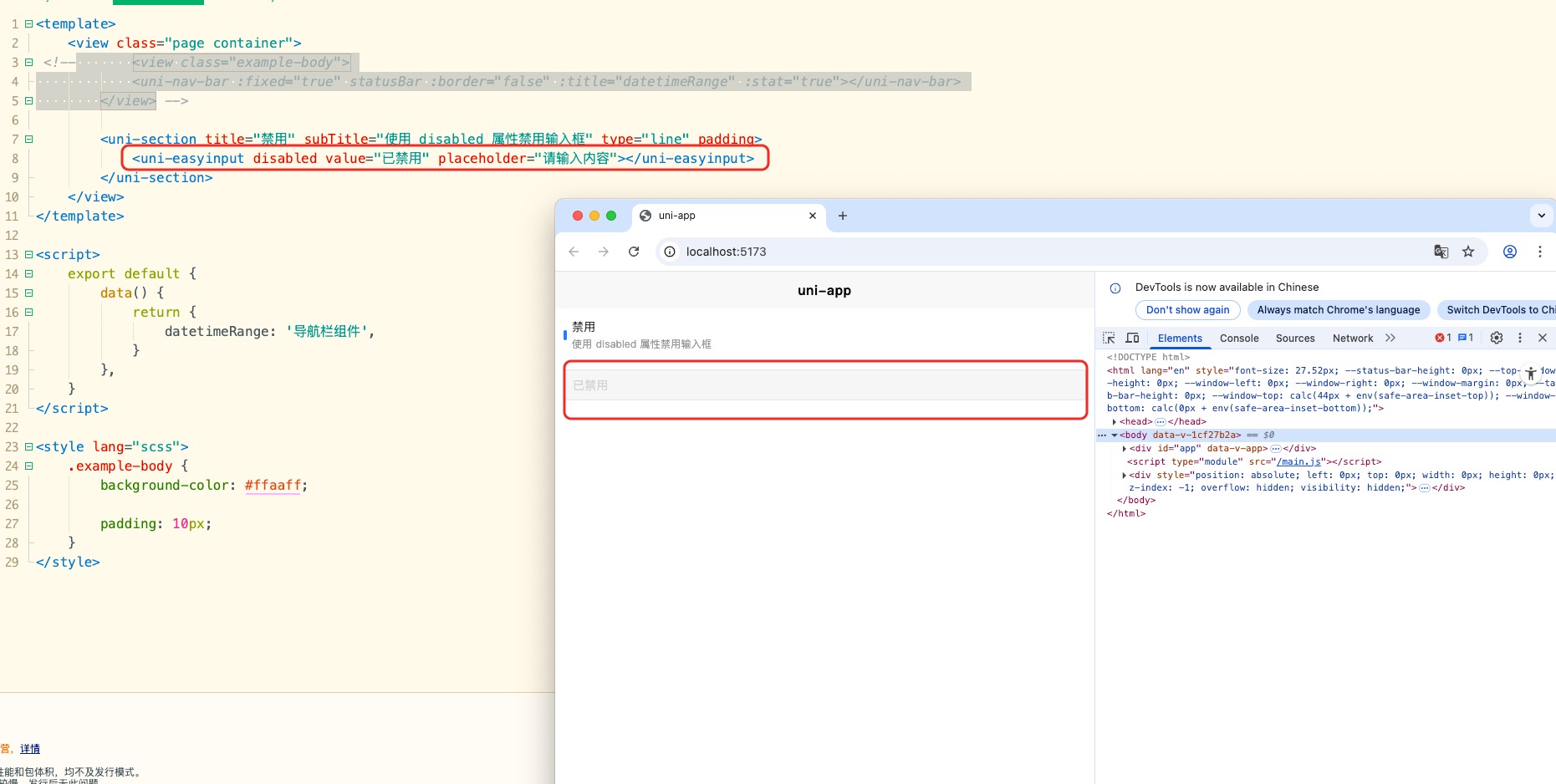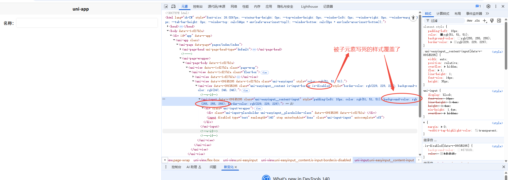 uni-app uni-easyinput输入框disabled样式不对