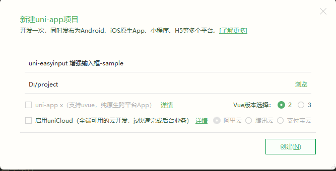 | 项目创建方式 | HBuilderX |