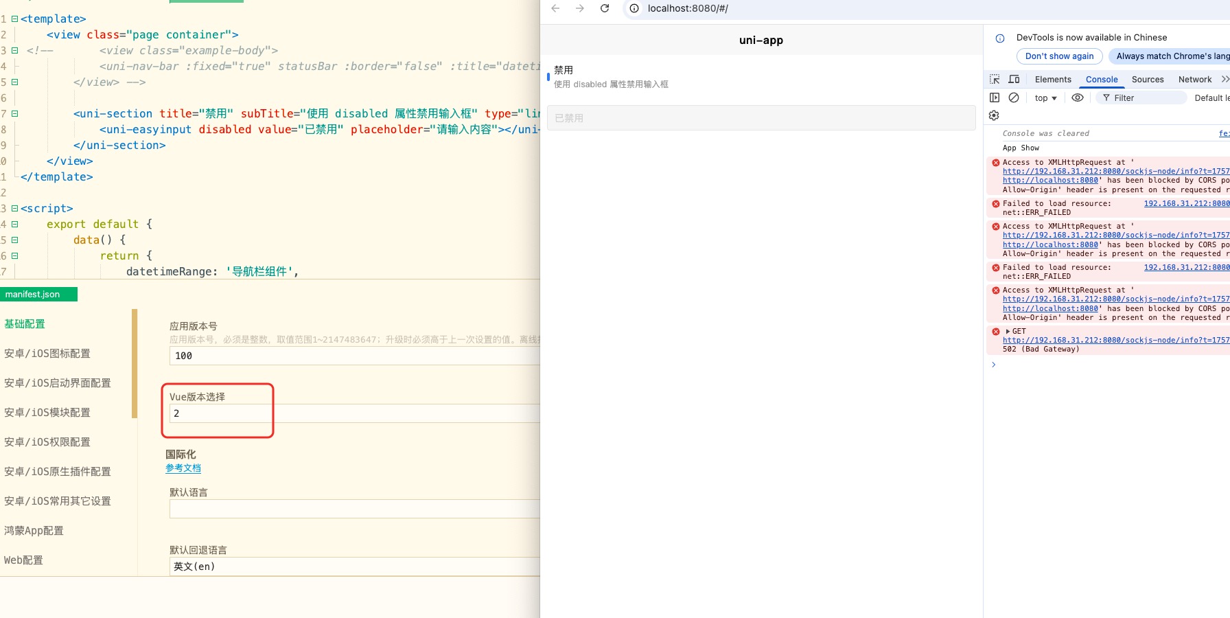 问题原因: uni-easyinput组件在disabled状态下,部分CSS样式可能被浏览器默认样式覆盖,特别是在H5平台下表现不一致。