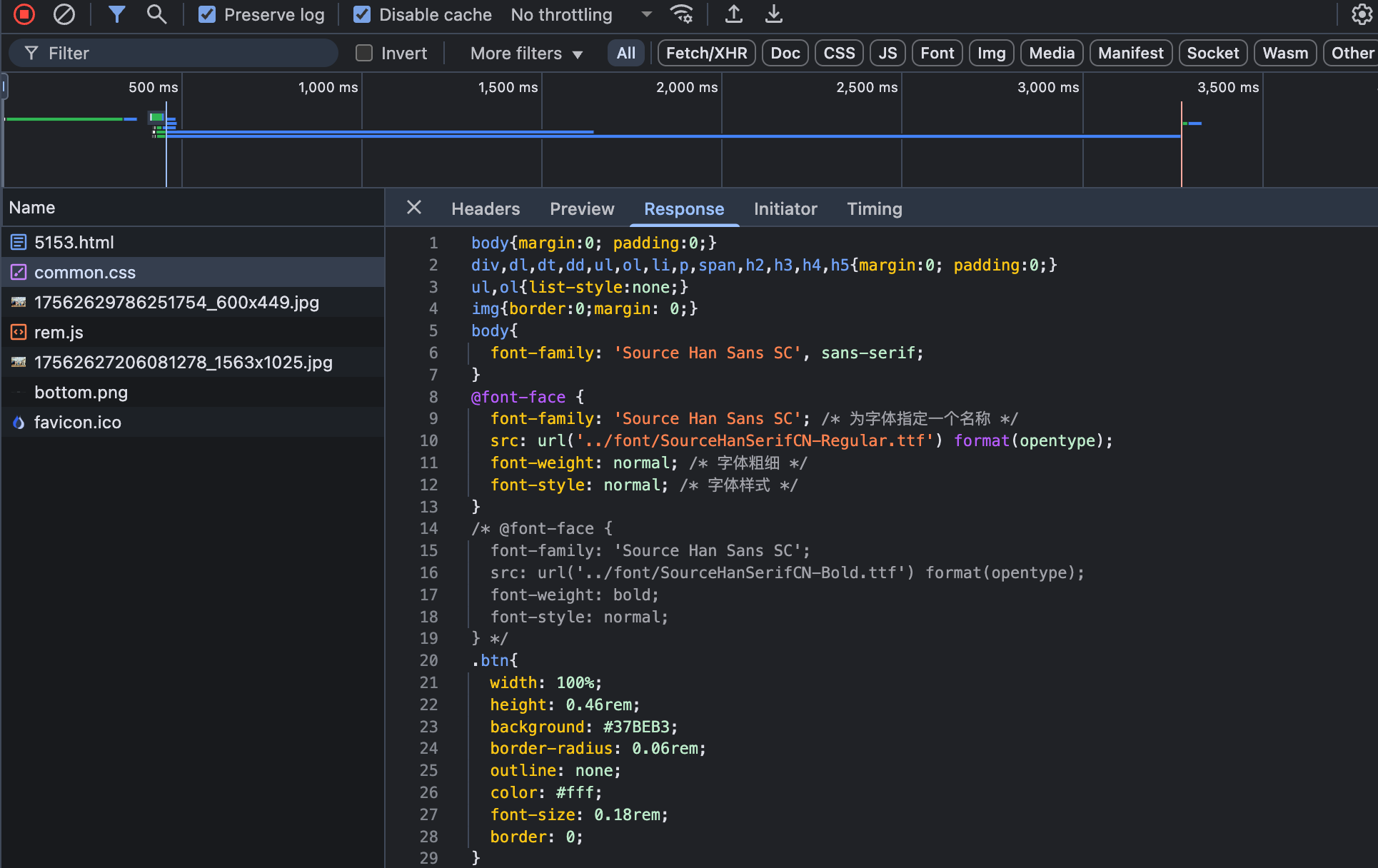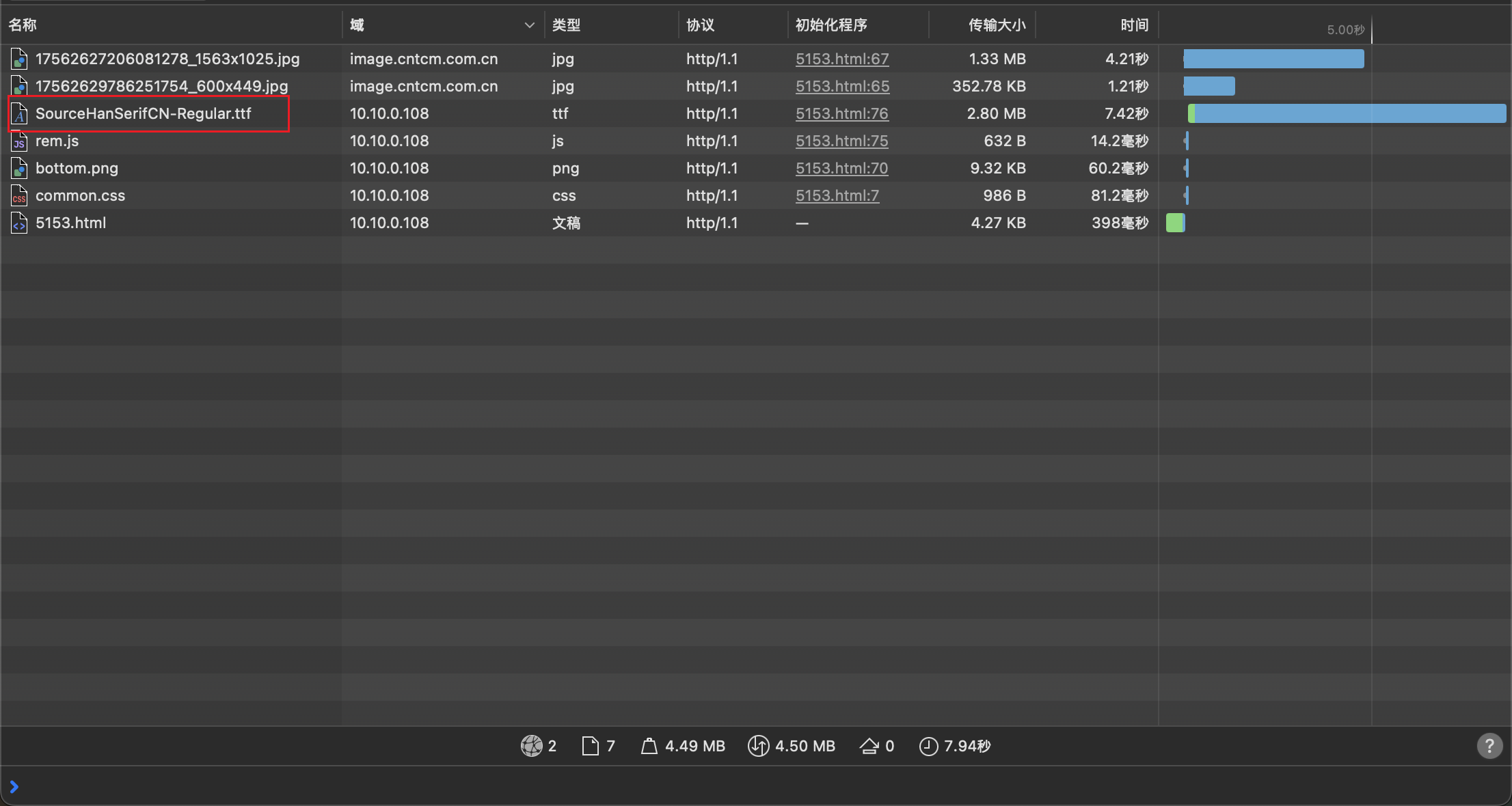 苹果手机链接电脑打开Safari的调试模式之后发现,加载了font
