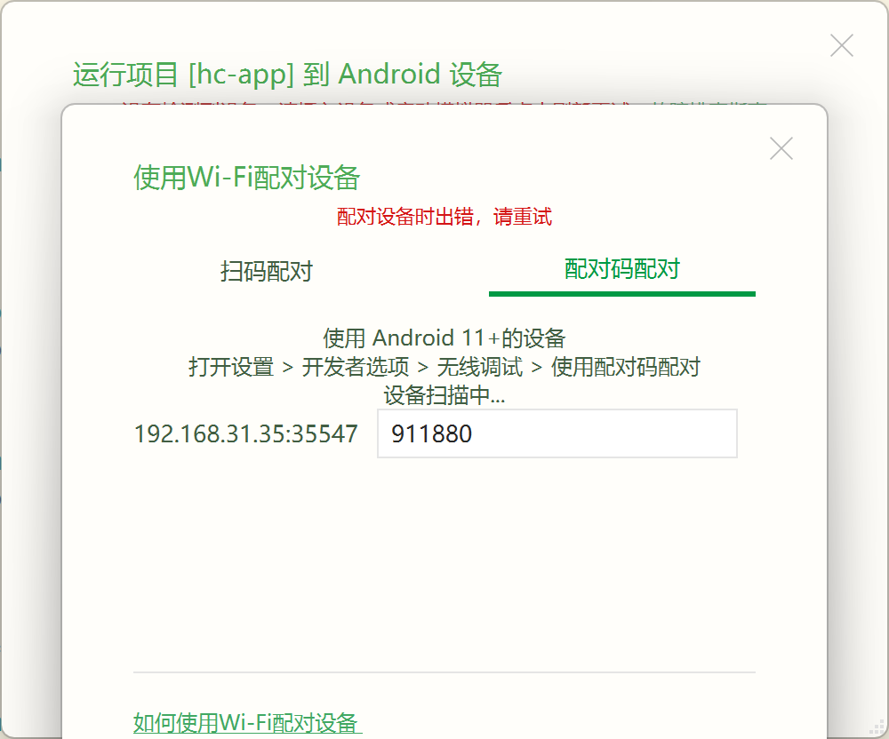 使用WiFi连接设备,二维码扫描完成后报错,验证码输入完成后报错