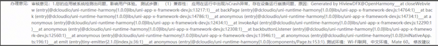 uniapp x 上架鸿蒙APP 稳定性测试未通过