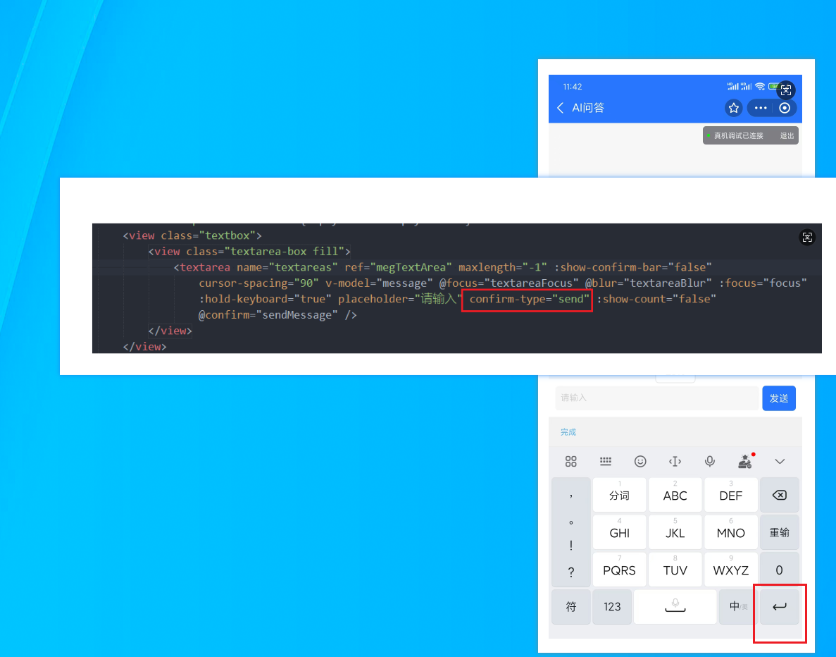 textarea 文本域的confirm-type属性设置了也不生效,依旧是原本的按钮