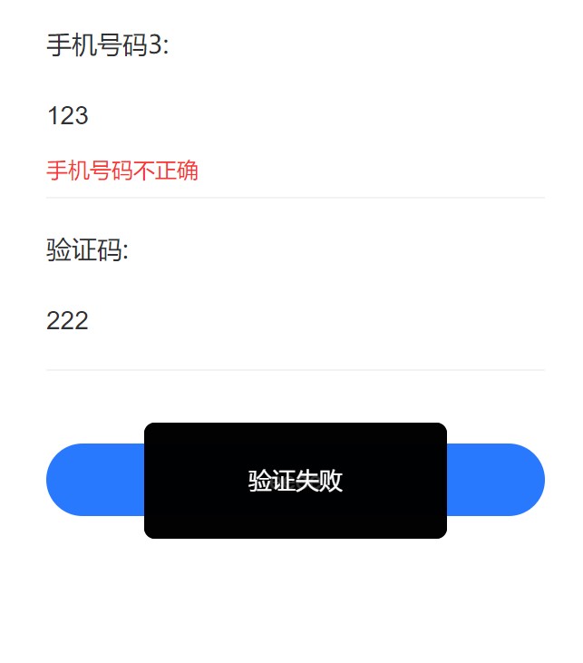 H5或头条小程序上模拟器里,填写手机号码,如果格式不正常,可以在字段下发提示的。点击按钮可以触发提示“正常触发提交”或“校验失败”–有反应就认为是正常的。