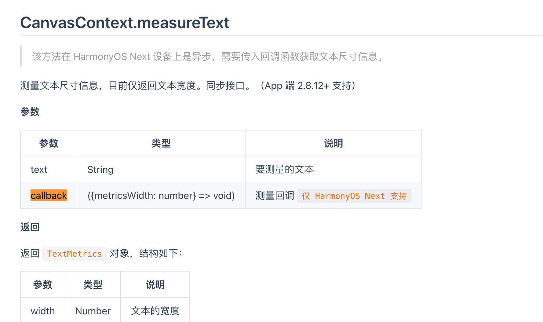 - 根据文档里 ctx.measureText在HarmonyOS Next要用异步的方式获取文本宽度,但是会抛错: