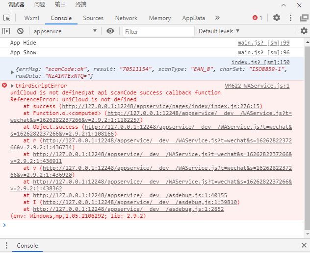 thirdScriptError uniCloud is not defined;at api scanCode success callback function ReferenceError: uniCloud is not defined