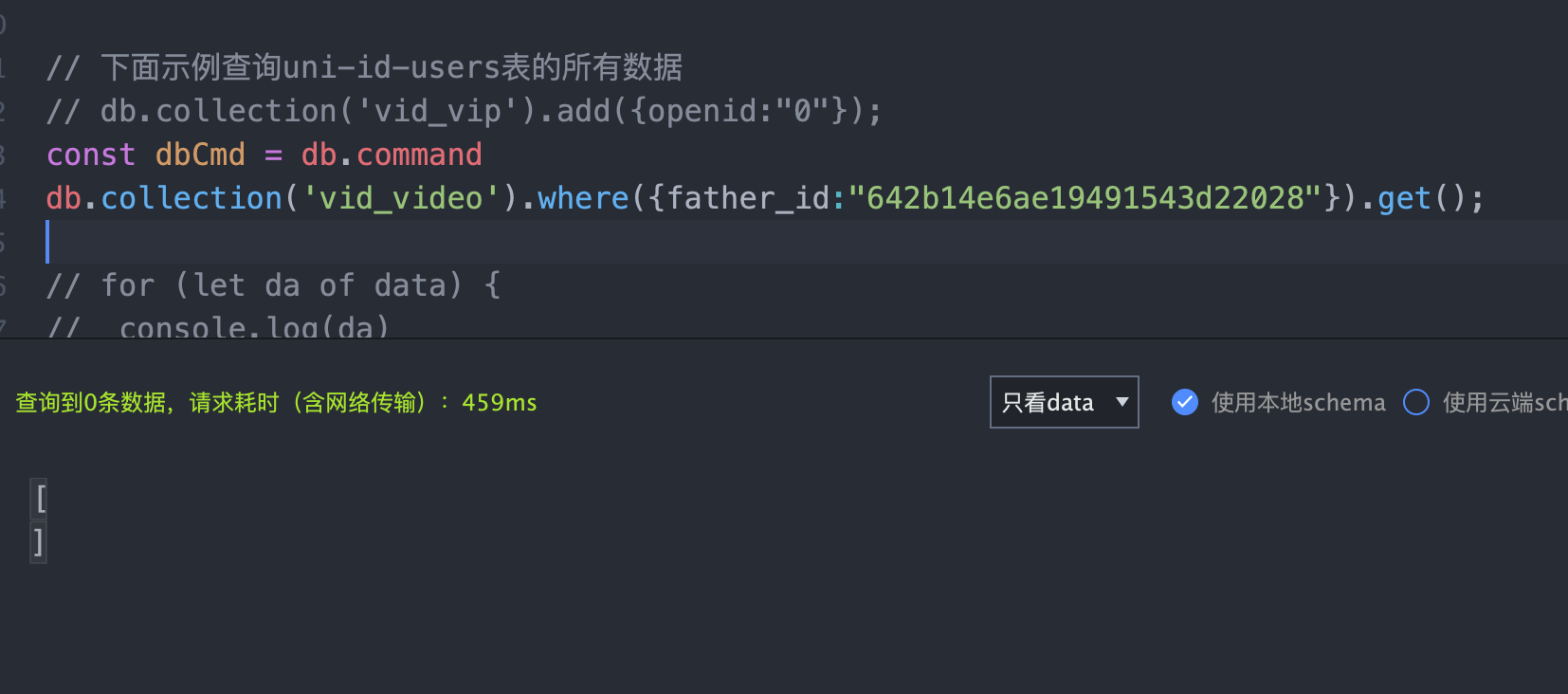 uni-app uniCloud where 查询不到数据