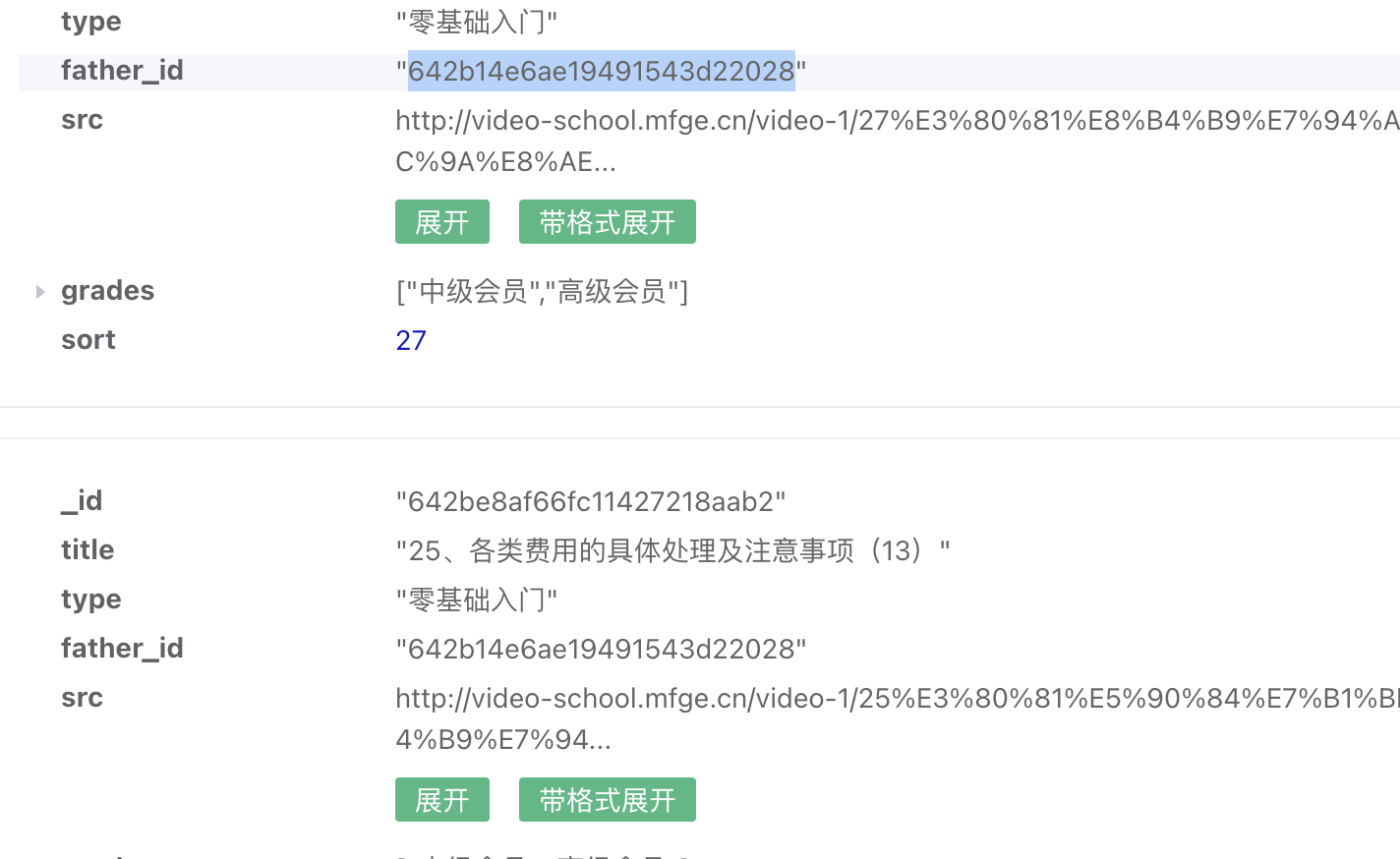 回复 DCloud_uniCloud_WYQ: 我通过 father_id 这个字段where 的时候查不到数据。 这个字段刚刚导出也看了。是字符串类型的