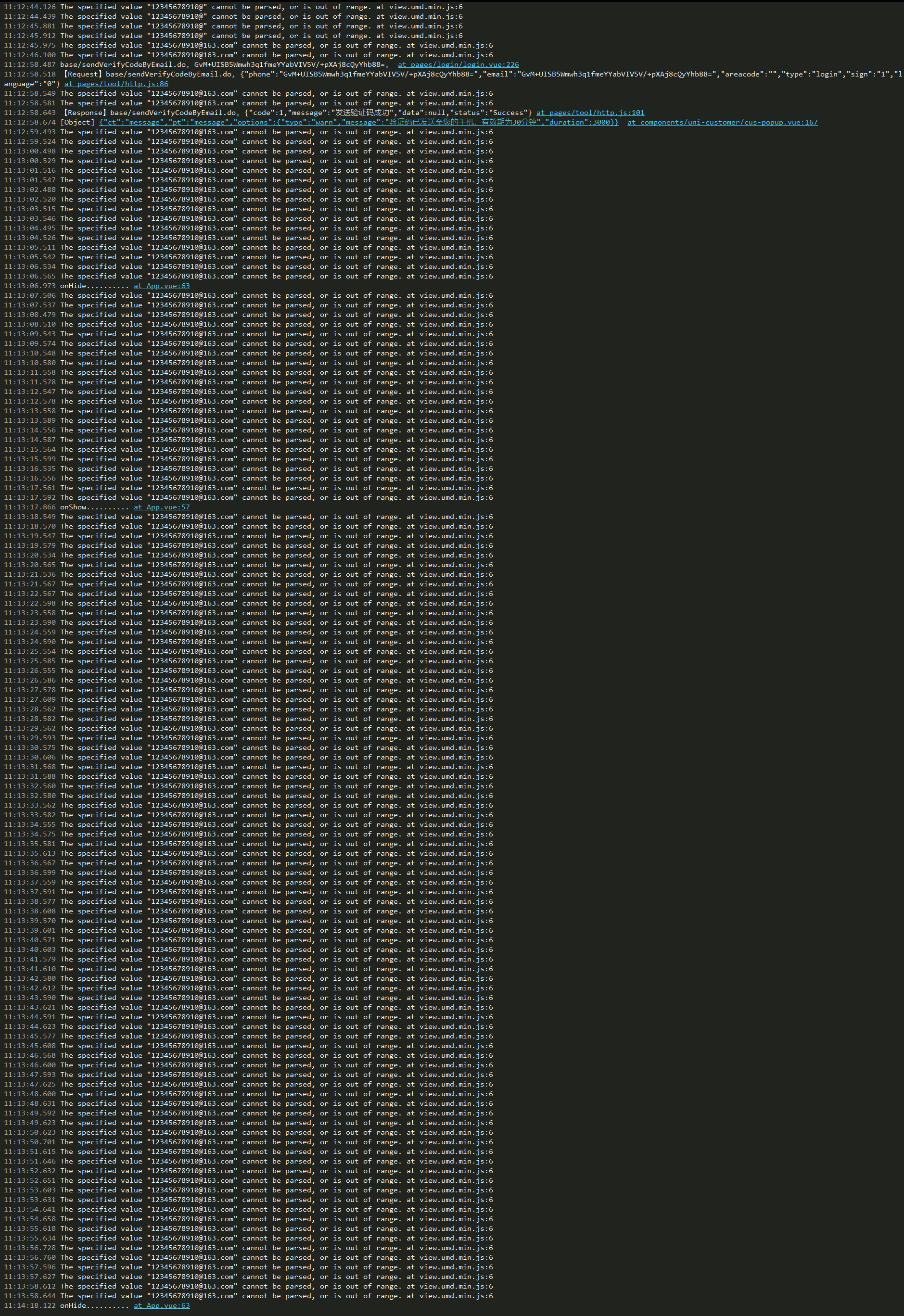 频繁出现这句话“The specified value “12345678910@163.com” cannot be parsed, or is out of range. at view.umd.min.js:6”。