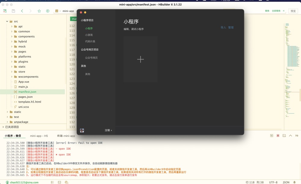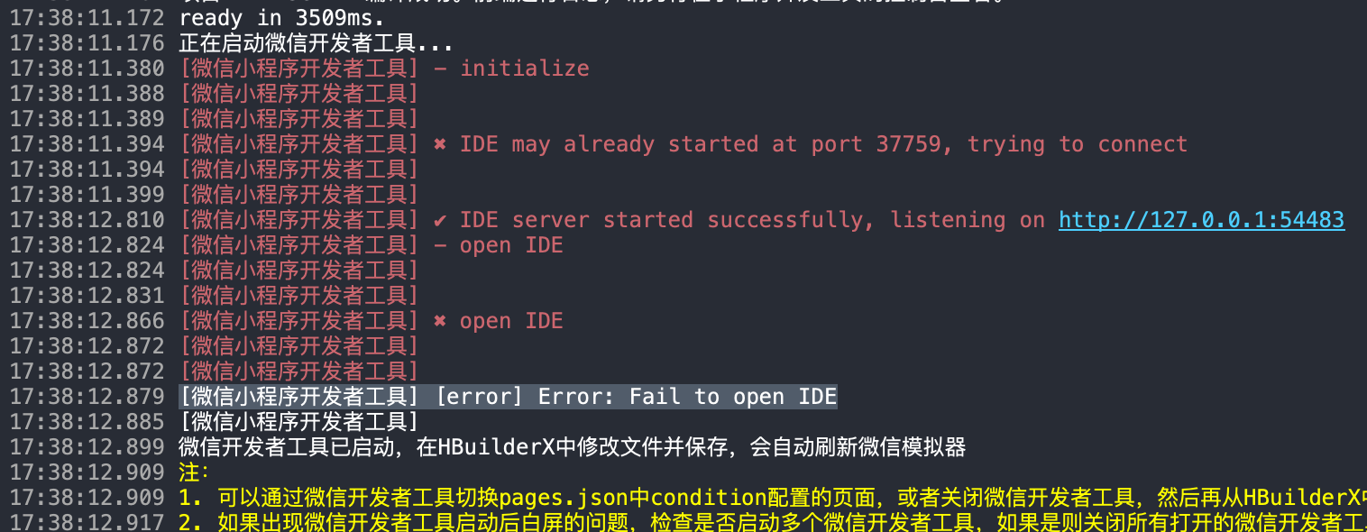 uni-app 微信小程序开发者工具报错 Error: Fail to open IDE