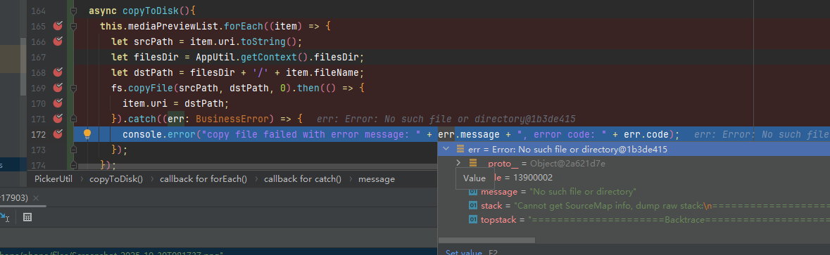 HarmonyOS鸿蒙Next中使用fs.copyFile从相册中拷贝图片到沙箱路径报错路径或文件不存在