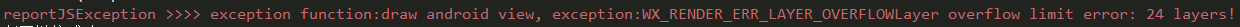 16:40:14.529 reportJSException >>>> exception function:draw android view, exception:WX_RENDER_ERR_LAYER_OVERFLOWLayer overflow limit error: 16 layers!