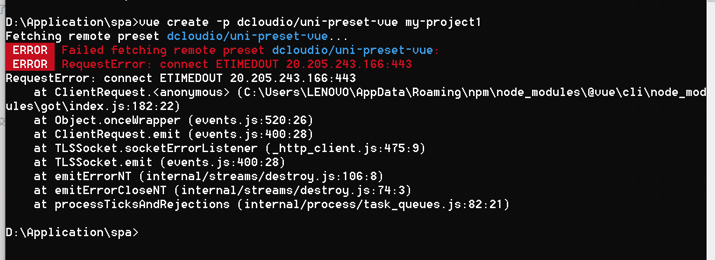 创建项目时选择默认模板,创建失败。求解决,谢谢!