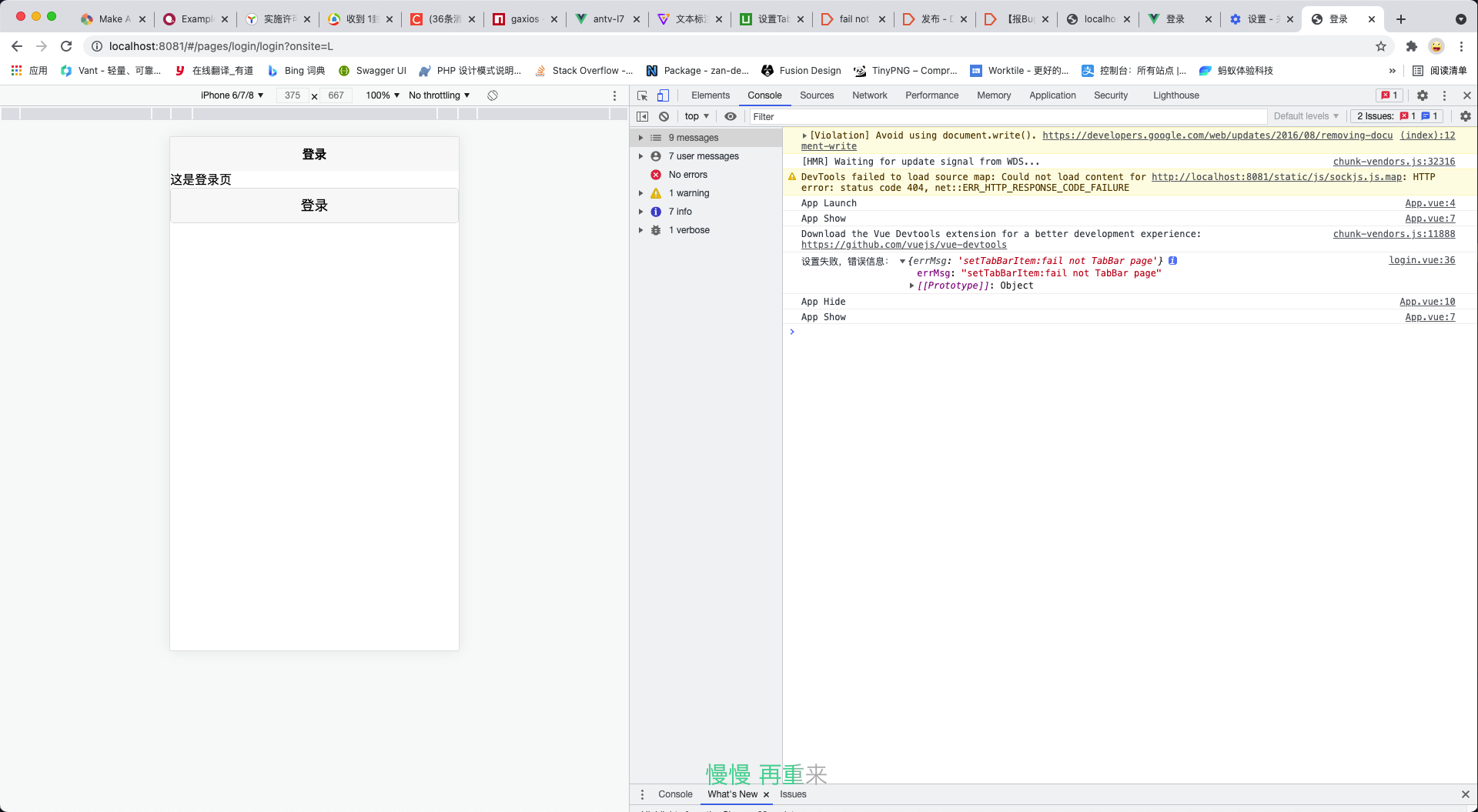 uni.setTabBarItem方法只能在 TabBar 页面中调用- 你的登录页没有在