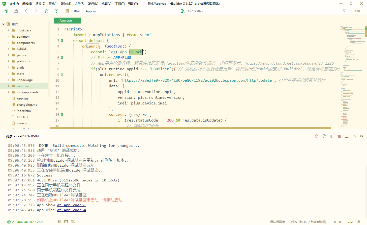 根据你提供的信息,app.vue中的onLaunch()和onShow()生命周期在App端未触发,这通常与项目配置或运行环境有关。以下是几个排查方向: