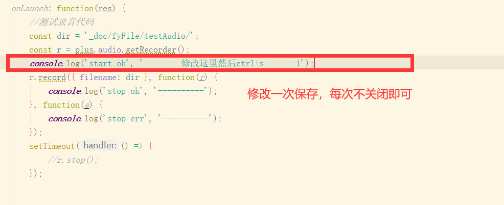 console.log(‘start ok’, ‘------- 修改这里然后ctrl+s ------1’);