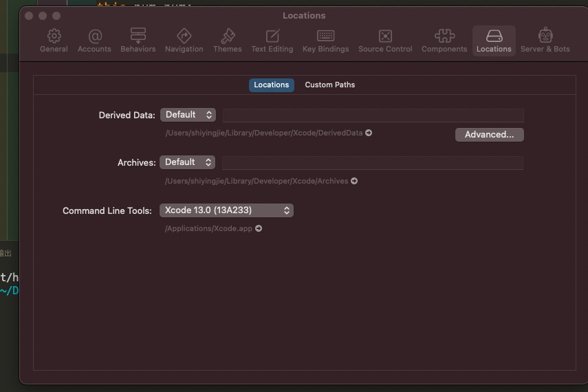 请确保xcode中,【Locations - Command Line Tools】命令行工具已选中。