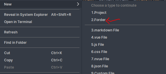 uni-app 英文版右键点击左侧文件列表新建文件夹的英文有误