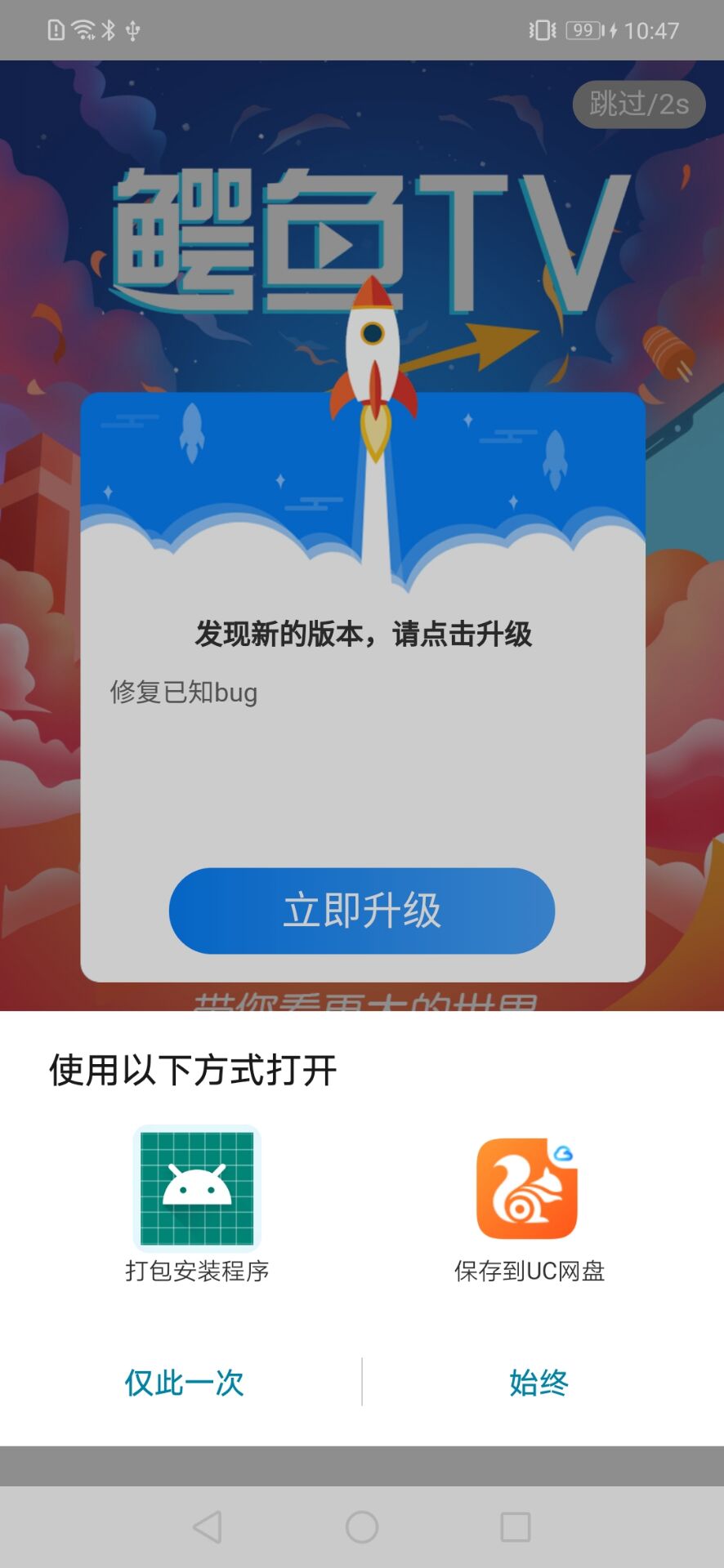 https://hbgd-app.oss-cn-hangzhou.aliyuncs.com/hbgd2109281.apk 使用华为荣耀play手机通过这个链接下载老的app,打开以后会提示自动更新 自动更新会走代码示例的代码,如果手机上有UC浏览器就会在下载完毕以后提示选择“打包安装程序”打开安装包还是把安装包文件“保存到UC网盘”