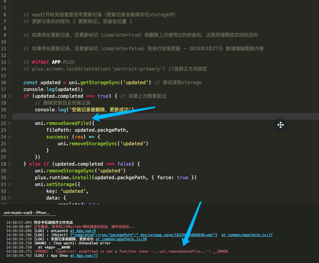 17:39:57.862 TypeError: uni.removeSavedFile is not a function. (In ‘uni.removeSavedFile({ filePath: “xxx” })’, ‘uni.removeSavedFile’ is undefined) __ERROR