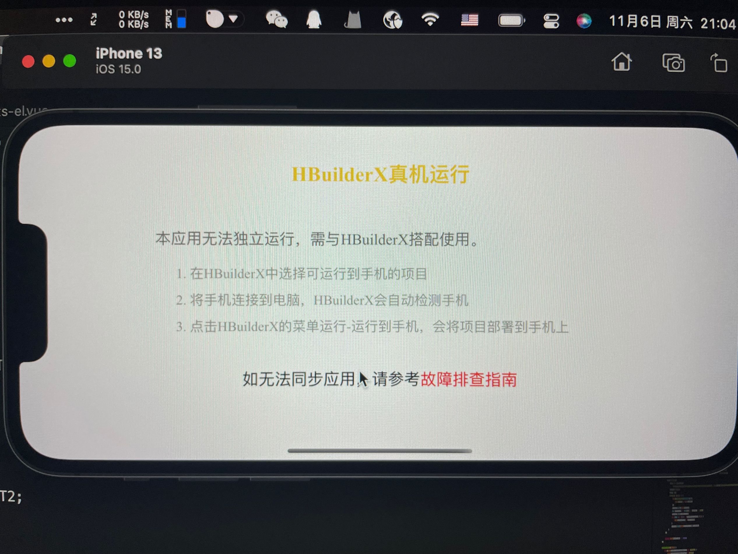 uni-app HbuilderX for macOS 使用 iOS模拟器运行项目报“HbuilderX 真机运行”