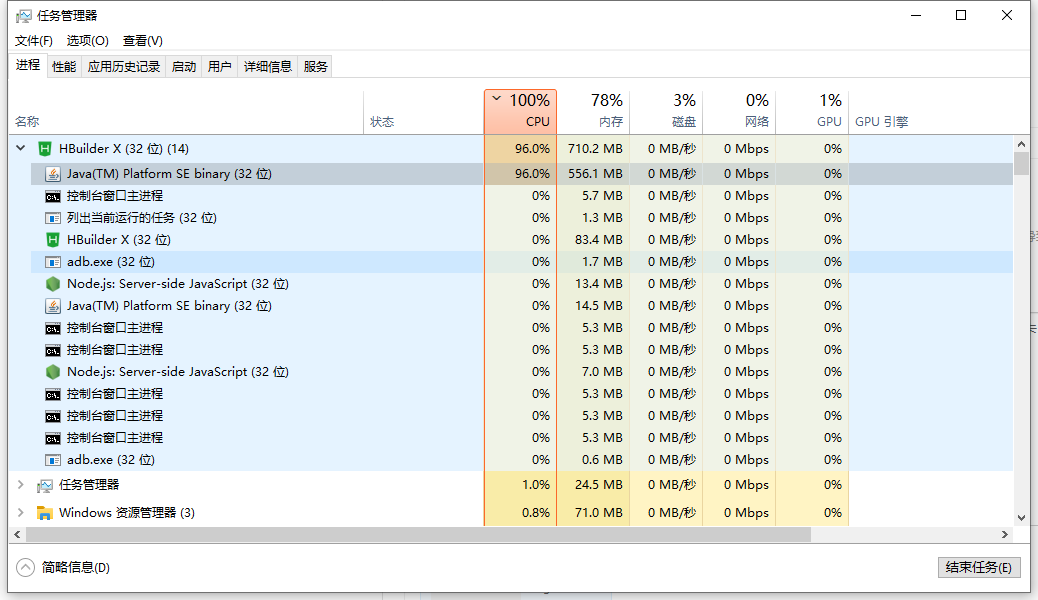打开HBuilder后CPU占用飙升,并且没有进行任何操作导致其他应用卡的要死HBuilder自己却不卡