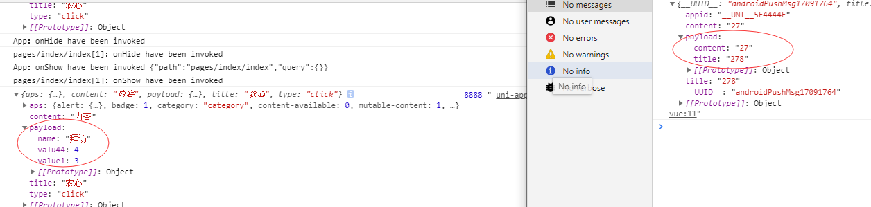 监听 安卓出现问题 推送消息 clicK 添加的附加消息 payload 附加消息字段 数据有误, ios 正常